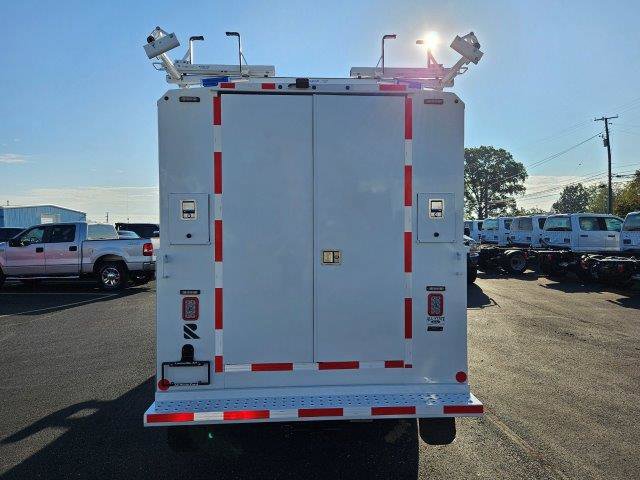 Its exterior features a durable cutaway chassis with a professionally installed service body, offering secure and organized storage for tools, parts, and work essentials, making it ideal for contractors, utility providers, and fleet operators. Inside, the driver-focused cabin offers practical comfort with supportive seating, intuitive controls, modern infotainment, Bluetooth connectivity, USB ports, and convenient storage for daily necessities.
