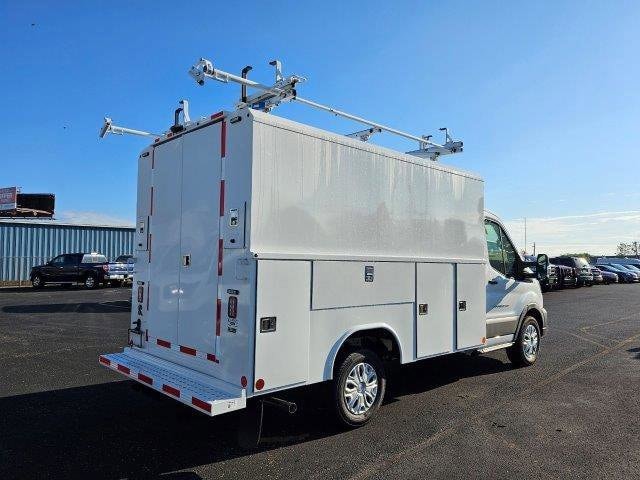 Safety features such as a rearview camera, stability control, and advanced braking systems provide peace of mind while maneuvering tight spaces or carrying heavy loads. Perfect for service professionals and business owners who need a reliable and efficient work vehicle, the 2024 Ford Transit T-350 Long Roof Cutaway RWD with service body combines rugged performance, functional utility, and everyday comfort into a single truck built to handle demanding workdays with confidence and efficienc