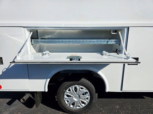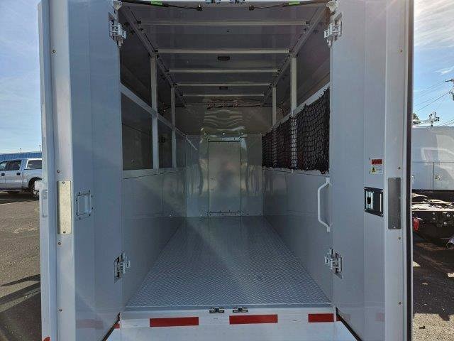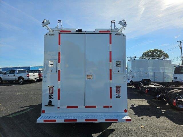 Its exterior features a durable cutaway chassis with a professionally installed service body, offering secure and organized storage for tools, parts, and work essentials, making it ideal for contractors, utility providers, and fleet operators. Inside, the driver-focused cabin offers practical comfort with supportive seating, intuitive controls, modern infotainment, Bluetooth® connectivity, USB ports, and convenient storage for daily necessities. Safety features such as a rearview camera, stability control, and advanced braking systems provide peace of mind while maneuvering tight spaces or carrying heavy loads.