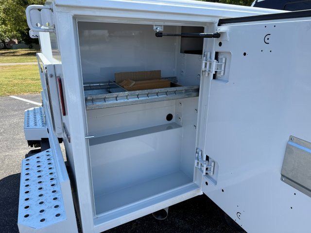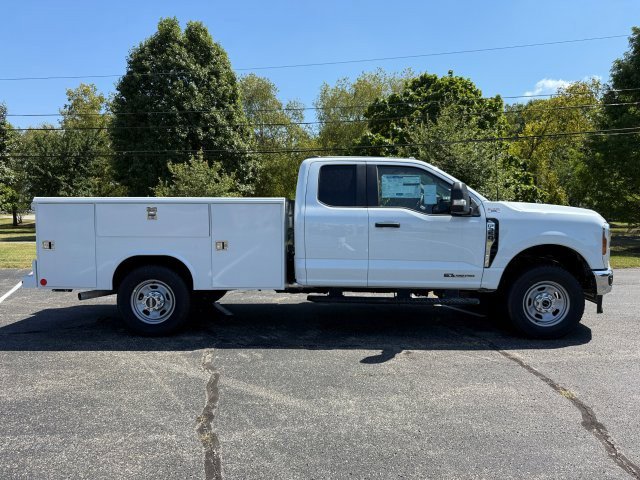 The 2025 Ford F-350 Super Cab Chassis 4*4 XL DRW 168WB with service body is a rugged and dependable heavy-duty commercial truck built for professionals who demand strength, versatility, and organization for their toughest jobs. Powered by a 6.7L Intercooled Turbo Diesel V-8 engine paired with a smooth automatic transmission, this truck delivers impressive torque and reliable performance for towing, hauling, and navigating job sites or challenging terrain with confidence and durability. Its robust four-wheel-drive system enhances traction and control in snow, mud, or uneven surfaces, helping you stay productive in all conditions. The exterior is built for durability and functionality with a reinforced chassis featuring a 168-inch wheelbase and dual rear wheels that provide enhanced load-bearing capacity, while the professionally installed service body offers secure, organized compartments for tools, parts, and equipment to keep your workday efficient. Inside, the driver-focused cabin provides practical comfort with supportive seating, intuitive controls, modern infotainment, Bluetooth® connectivity, USB ports, and convenient storage for everyday essentials, making longer drives more comfortable. Safety features including a rearview camera, stability control, and advanced braking systems deliver peace of mind whether maneuvering tight worksite spaces or towing heavy loads. Designed for contractors, fleet operators, and service professionals, the 2025 Ford F-350 Super Cab Chassis 4*4 XL DRW 168WB with service body combines rugged performance, functional utility, and everyday comfort into one dependable vehicle that's ready to tackle demanding workdays with confidence and efficiency.